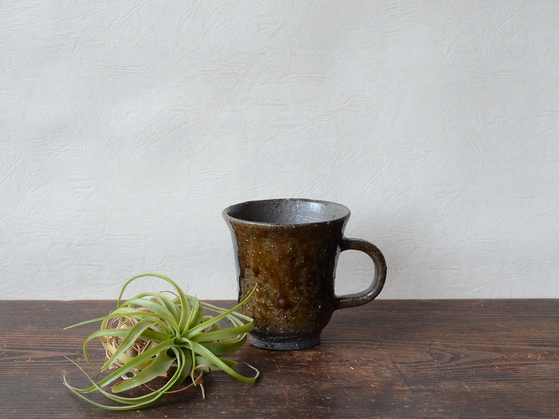 引出の落ち着いた表情が美しい珈琲碗。焼成中に引出された作品で、引出特有の飴色の透明な胡麻が愉しめます。シャープな印象の細身の造形で日常使いにおすすめ。引出の質感をお楽しみください。※引出しは焼成中に窯から引き出し、籾殻などの中に入れて急冷させるため、表面に鉄棒や火箸などの引っ掛け跡や冷却の際につく籾殻やくっつきの跡などがあります。