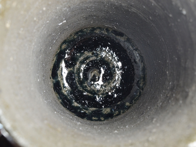 窯詰めを効率的に使うために器同士を重ねて置いた部分が、牡丹餅を置いたように丸く変化したものです。 皿や鉢を重ねることで効率よく焼く為、食器に多く見られる焼け肌です。