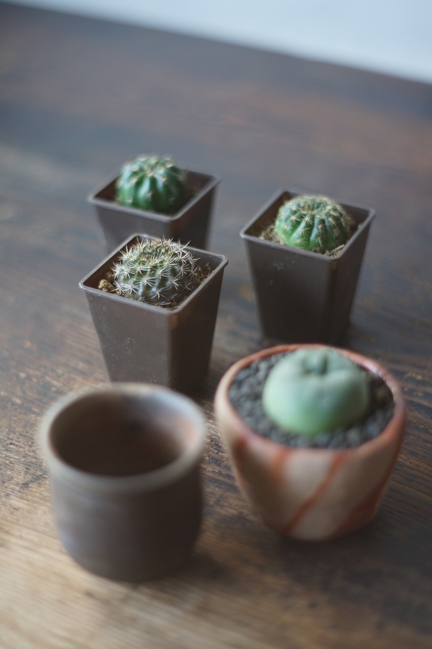 わかくさに仲間入りしたサボテン達はもれなく備前焼へ植えられる運命にあります。