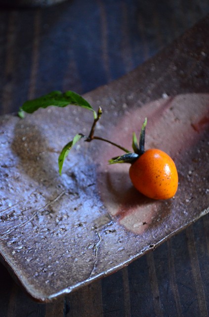 三つ足長方皿小 近藤正彦 -老爺柿をのせて-