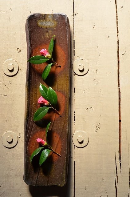 鎬長方皿 横山直樹 -侘助椿-