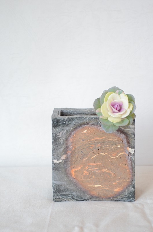 窯変角花入 Naoki Yokoyama -葉牡丹-