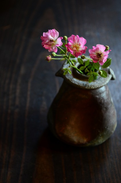 備前焼と洋花、