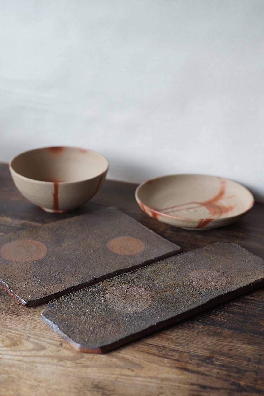 たたき長方皿(高力芳照) 火襷麺鉢(高力芳照) 火襷皿(高力芳照)