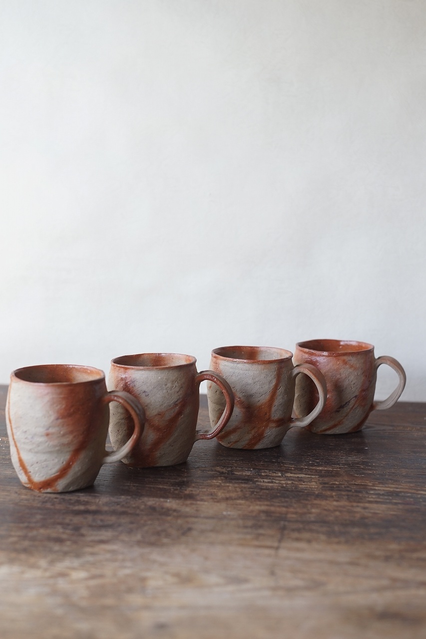横山直樹作 自然練込マグカップ 4点
