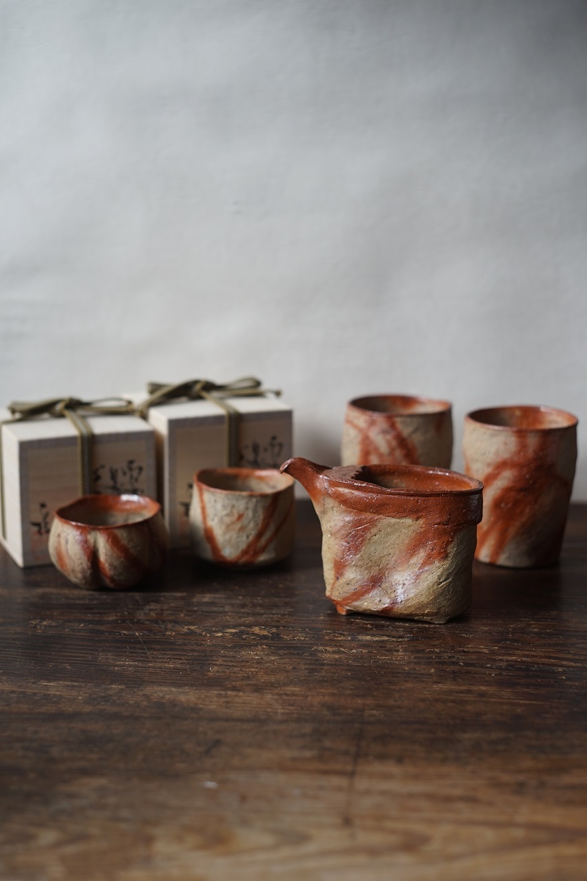自然練込片口酒器(横山直樹) 自然練込輪花ぐい呑(横山直樹) 自然練込面取ぐい呑(横山直樹) 自然練込ビール杯(横山直樹)
