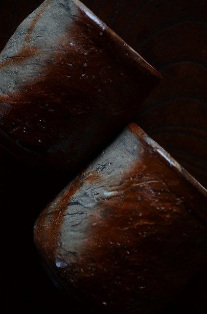 まだら模様の土味に緋襷の景色が乗った自然練込。