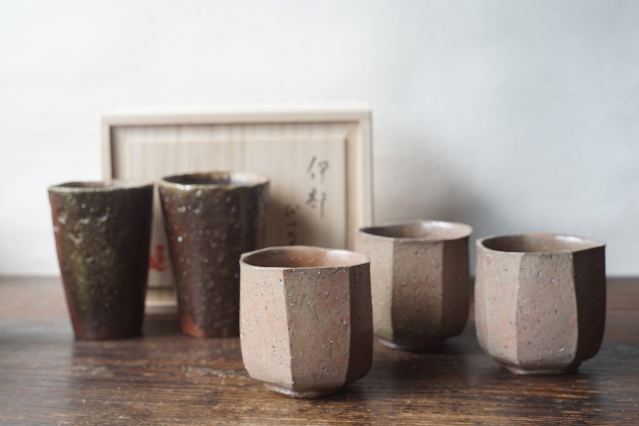 塩青面取焼酎杯(藤原康) ビール杯揃(屋代剛右)